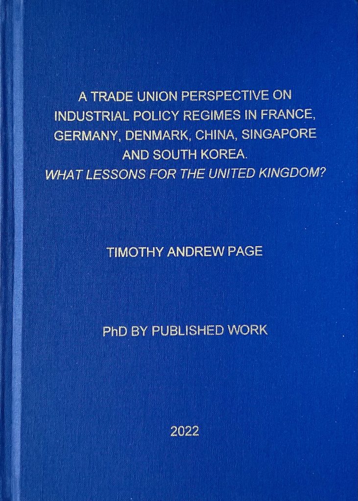 In August 2022, Tim Page, the Founding Director of Industrial Paradigm, was awarded a PhD by Published Work by Oxford Brookes University. A link to Tim’s thesis, entitled ‘A trade union perspective on industrial policy regimes in France, Germany, Denmark, China, Singapore and South Korea: What lessons for the United Kingdom?’ can be found here: