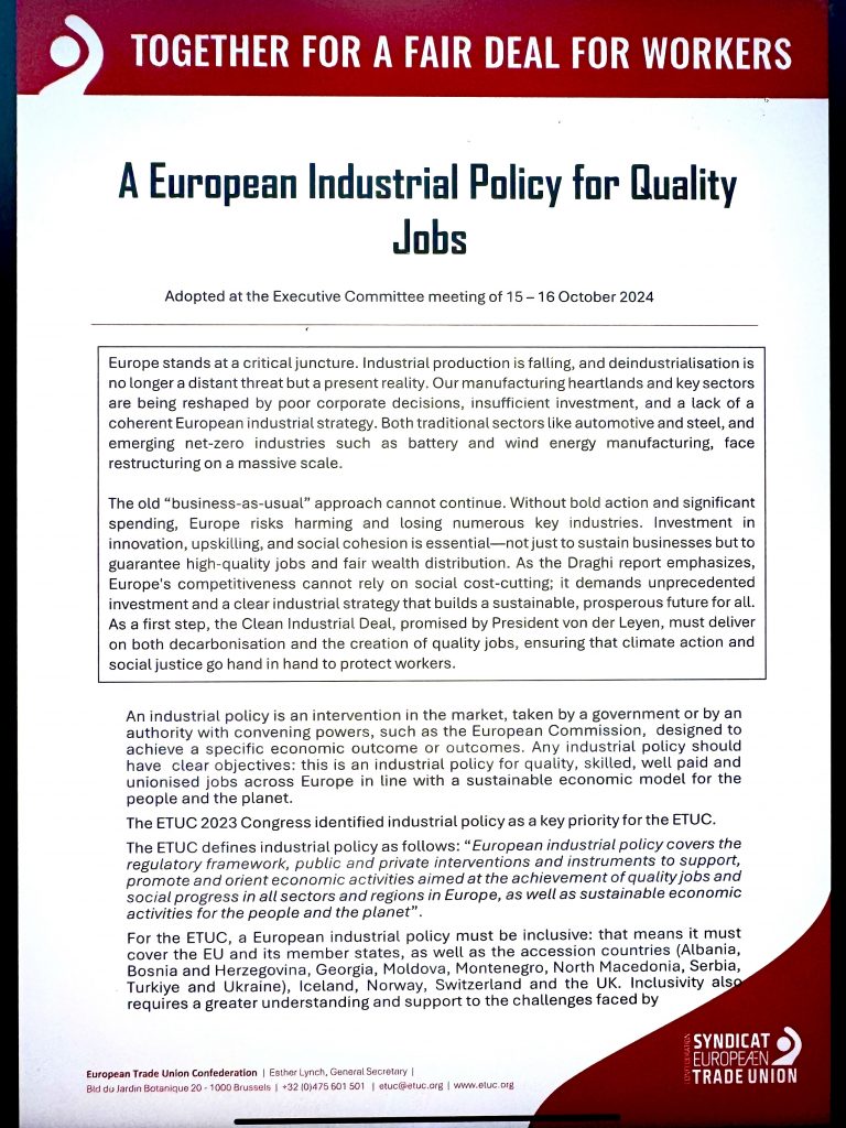 The ETUC’s industrial policy for Europe can be found here: https://etuc.org/en/document/european-industrial-policy-quality-jobs